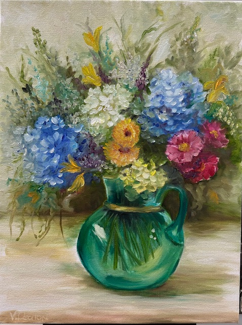 Flowers in a Green Vase