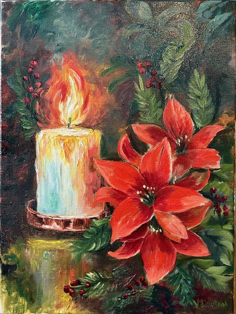 Learn to oil paint these beautiful red poinsettias and a glowing candle. We will use a combination of brushes and palette knife. All levels of painters are welcome, even beginners […]